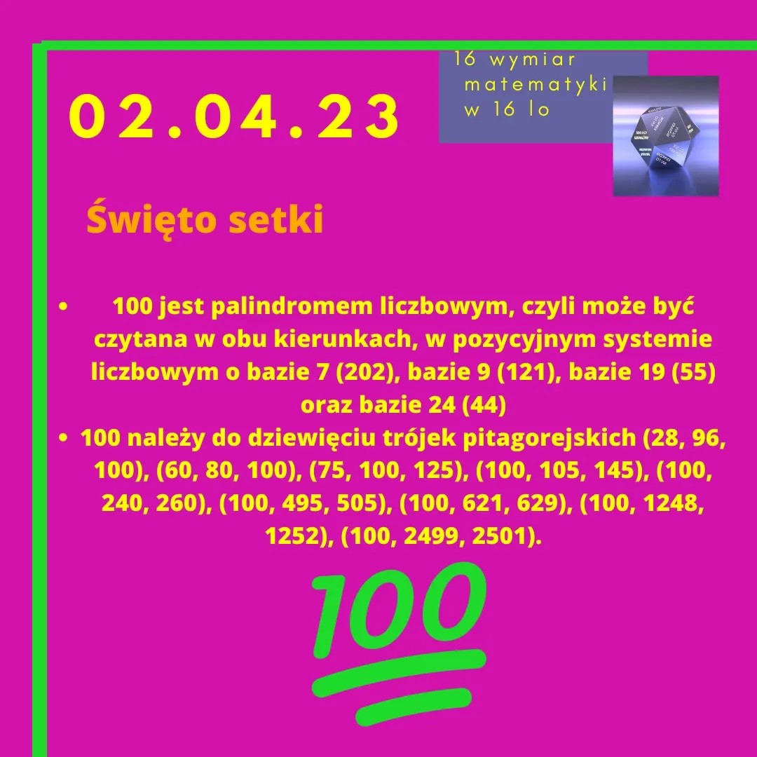 Pomysł święta setki wziął się z wyniku działania wykonanego na dacie 02.04.2023r